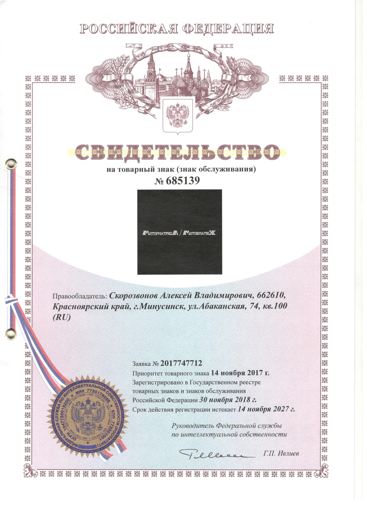 Стадиярегистрации ТМ-1 означает, что заявкана регистрацию товарного знака принятаи получен положительный приоритетРоспатентом на дальнейшую регистрацию.При получении клиентом данной стадии,дальнейшие схожие товарные обозначениябудут получать отказ Роспатентом врегистрации.
